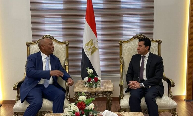 التقي الدكتور أشرف صبحي وزير الشباب والرياضة باتريس موتسيبي رئيس الاتحاد الأفريقي لكرة القدم وذلك عقب استقباله بمطار القاهرة الدولي .