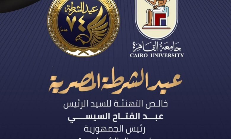 رئيس جامعة القاهرة يهنئ فخامة رئيس الجمهورية ووزير الداخلية وقيادات ورجال الشرطة بمناسبة الاحتفال بعيد الشرطة الرابع والسبعين